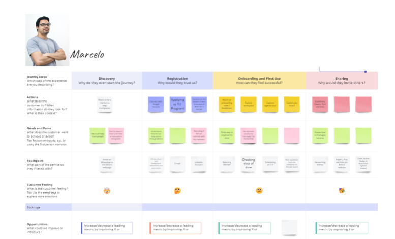By running a survey with existing group members and analyzing existing data, we've defined 3 personas to scope the user target for the interviews. We've facilitated a brainstorming workshop to generate solutions for each persona's pain points and conducted exploratory research through a series of user interviews with existing users of the Brito services, based on the personas previously defined. The team also conducted competitor analysis in the non-profit newcomer's support industry.We've facilitated a brainstorming session with a group consisting of 5 users and part of the development team to explore ideas and create collectively a journey map for the personas.Mapping all the research findings led to the creation of a journey map and low-fidelity sketches. These artifacts were used to further iterate our designs.