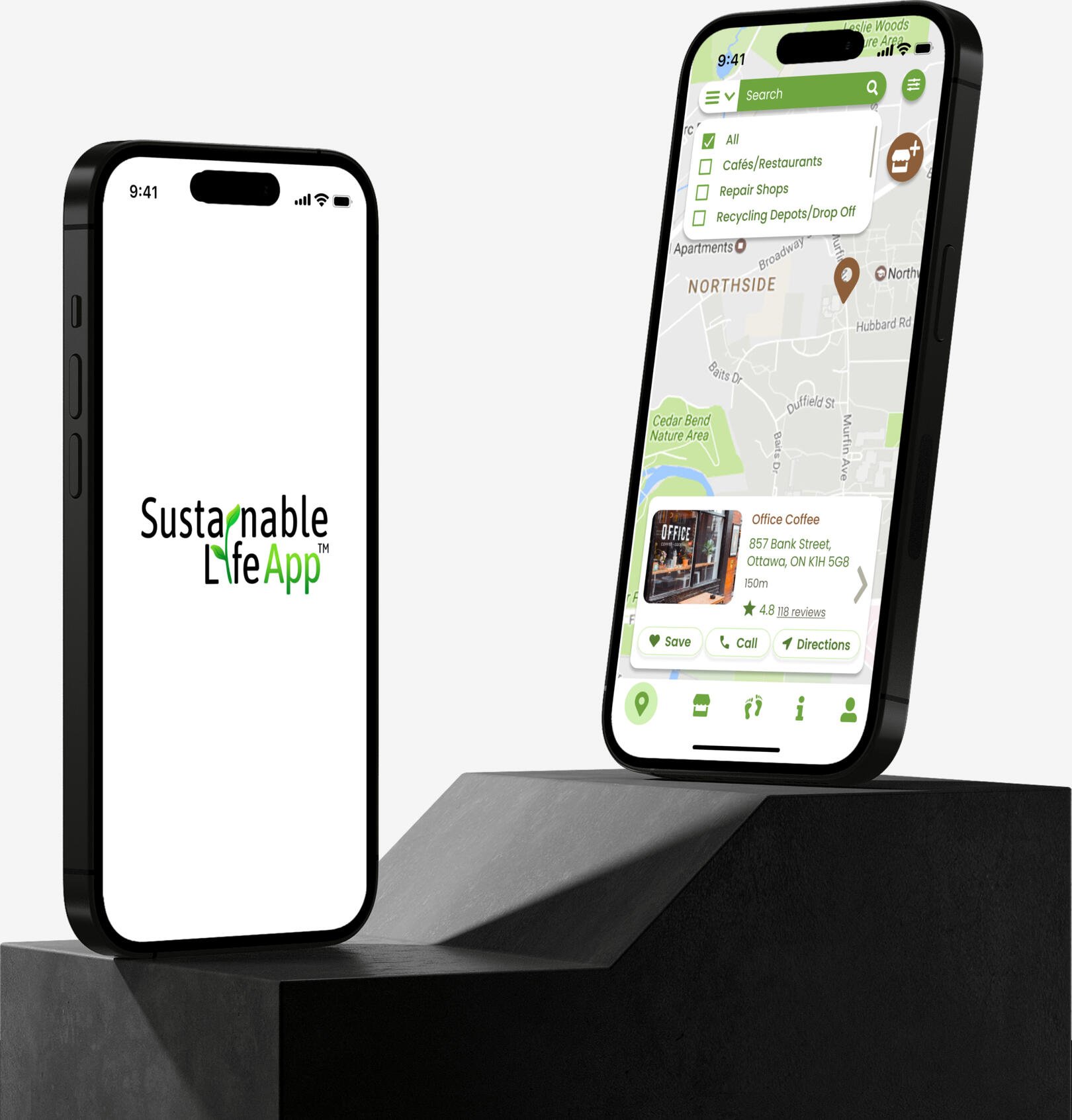 Sustainable Life App is a free app helping communities reduce waste and create a circular economy by connecting eco conscious consumers with sustainable businesses and brands in their area.
